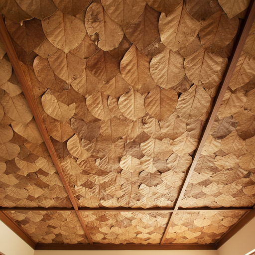 Naturally dried teak leaves processed for interior applications, offering a warm tropical aesthetic, organic texture, and functional benefits such as passive thermal insulation, moisture regulation, and natural acoustic dampening.